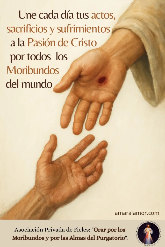 Uniremos, todos nuestros actos y sufrimientos diarios, a la Pasión de Cristo, por todos los moribundos de ese día.